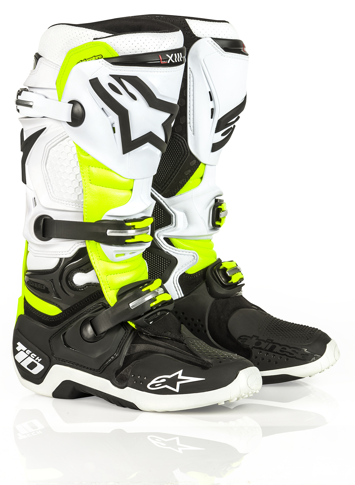 Uncompromising in protection and performance, the Tech 10 is the pinnacle motocross boot that all others are measured against. Now offered in another distinctive and unique colorway, the D71 Special Edition Tech 10 adds protection, performance, and more style to the 2016 Tech 10 line-up. This boot is available from Alpinestars dealers.